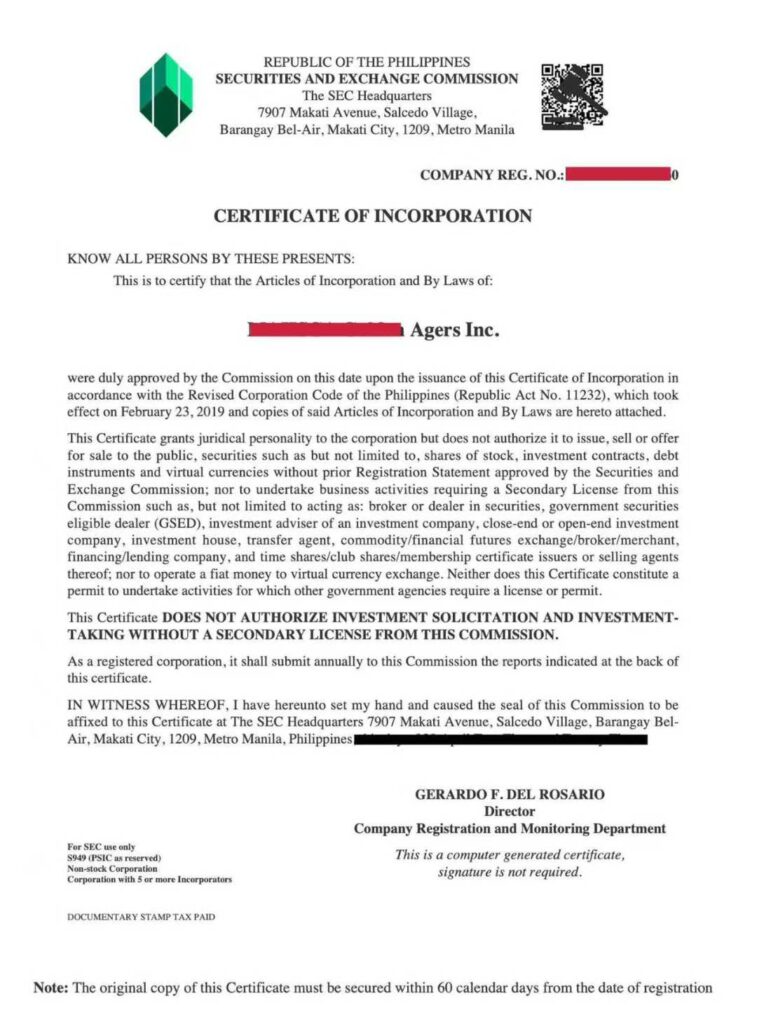 在多数情况下,注册资本不需立即实缴,但SEC要求提供银行证明(Bank Certificate)或宣誓书(Treasurer’s Affidavit)以确认资金可用。若申请特定执照(如BPO、出口、投资公司等),则需实际入资到菲律宾银行账户并提供正式证明。