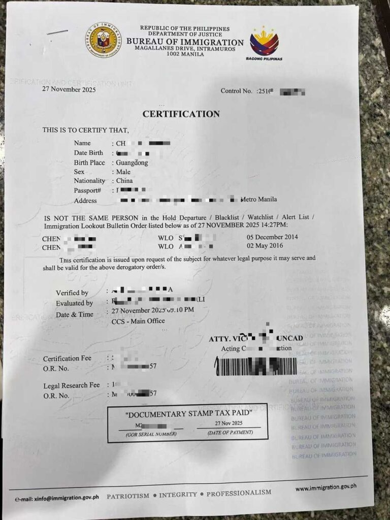 目前菲律宾移民局尚未开放 NTSP 公共在线查询系统,但内部系统可扫描条码验证真伪。银行、律师事务所以及政府单位会通过官方热线或验证通道核对文件真实性。因此申请人切勿使用未授权中介或非官方渠道获取文件,以免触发银行反洗钱调查或移民局查验。